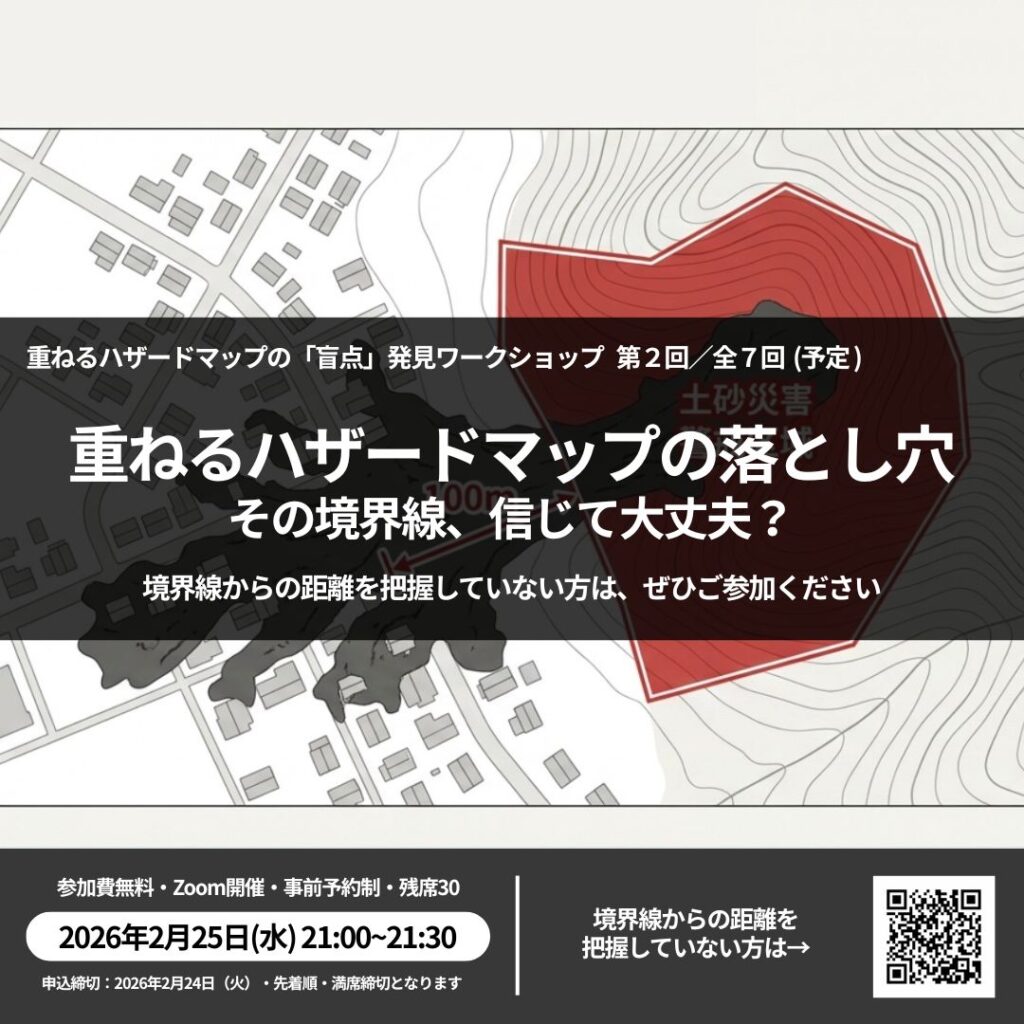 2026年1月28日、21時〜21時30分に、弊会主催の「重ねるハザードマップ ワークショップ」(旧名称:防災スキルUP無料講座)を開催いたしました。