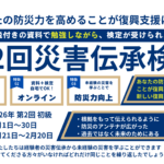 2026年度「災害伝承検定(オンライン自己学習講座+検定)」受講のお申し込み受付を開始いたしました。第1回中級を2月19日〜4月4日、第2回初級を3月1日〜3月30日にて開催いたします。