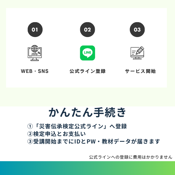 「災害伝承検定 公式LINE」にてお申し込みください