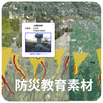 毎月1度開催している無料講座は「重ねるハザードマップ」の使い方をご紹介しています。災害伝承の活用において、伝承されている内容を今現在と確認したり、地形分類で地形の成り立ちや過去の様子を把握することが欠かせないため、国土地理院地図の操作方法スキルが不可欠なためです。第1部では、自然災害伝承碑の地図記号を表示し、伝承内容を確認する方法をご案内しています。どなたでもご参加いただけます。