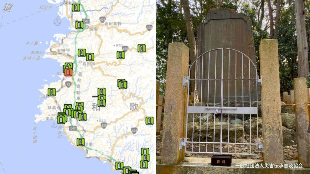 広川町は「百世の安堵」が日本遺産にも選ばれていて、こちらの自然災害伝承碑ほか、とてもしっかりした案内看板が設置されています。防災観光や学習で、町を歩くのも楽しいこと間違いなしです!宿泊もできる温泉もあります。日本遺産ポータルサイト「百世の安堵」へはこちらから