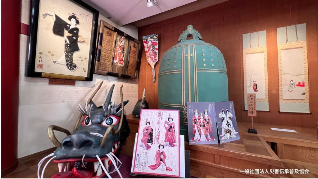 二人道成寺に登場する釣鐘(レプリカ)実物は合戦の陣鐘として持ち帰られ現在は京都妙満寺に