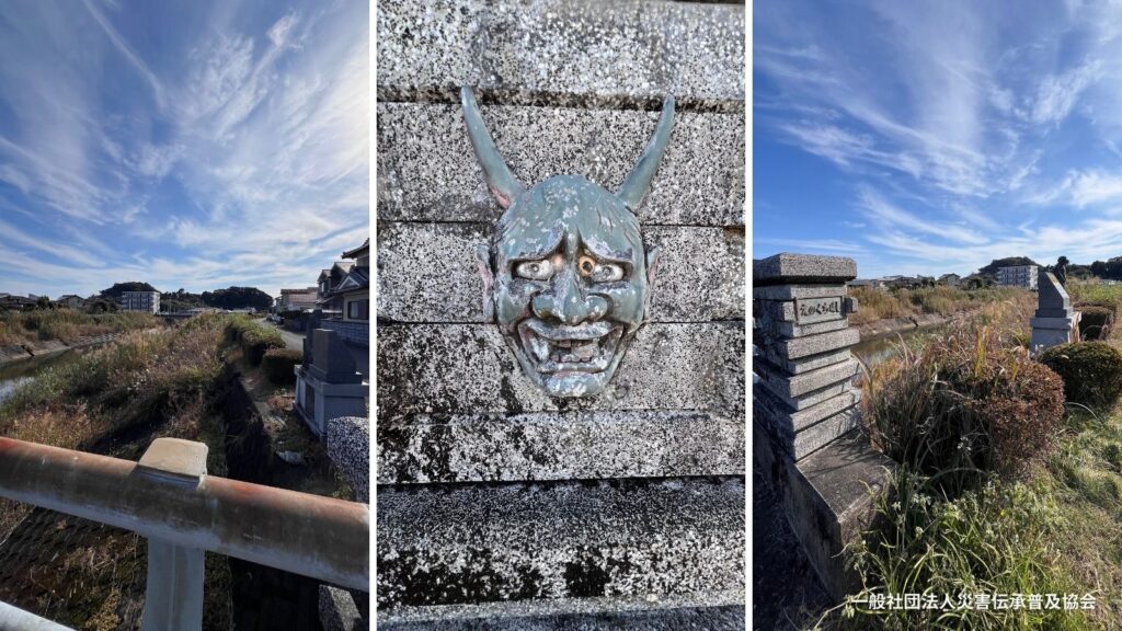 石碑の近くには「鬼付女川」が流れています。現地で見た「鬼付女川」は大きな川ではなかったので、この川が氾濫し、368.4ヘクタールもの広範囲が浸水したという事実に驚かされました。