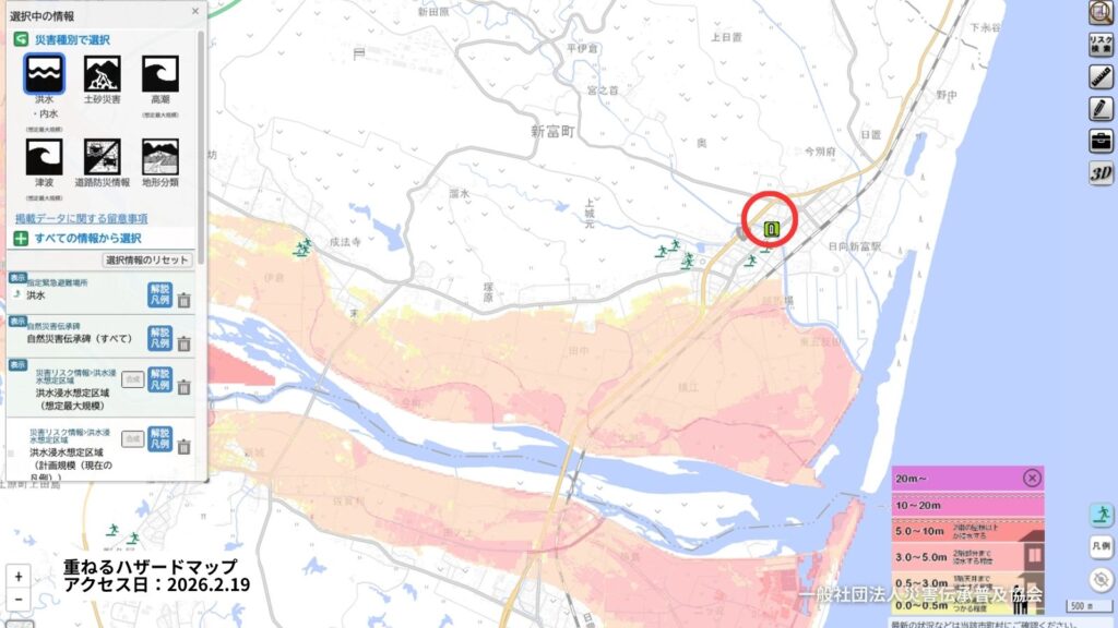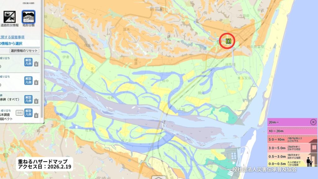 ただ、、、重ねるハザードマップで確認してみると石碑が伝承しているリスクは過去のものではなく、今も私たちの足元にあることをハザードマップが教えてくれました。