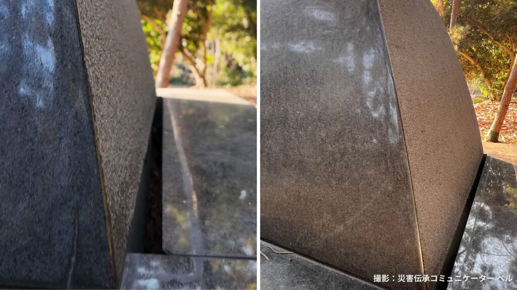 自然災害伝承碑|兵庫県明石市「『明石空襲の碑』の地殻変位を記す碑」二つの記憶を伝える石板