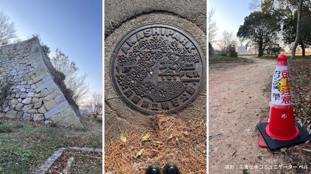 • 昭和60年(1985)に設置された「明石空襲の碑」が、平成7年(1995)1月17日の兵庫県南部地震において北東に約5cm移動した。