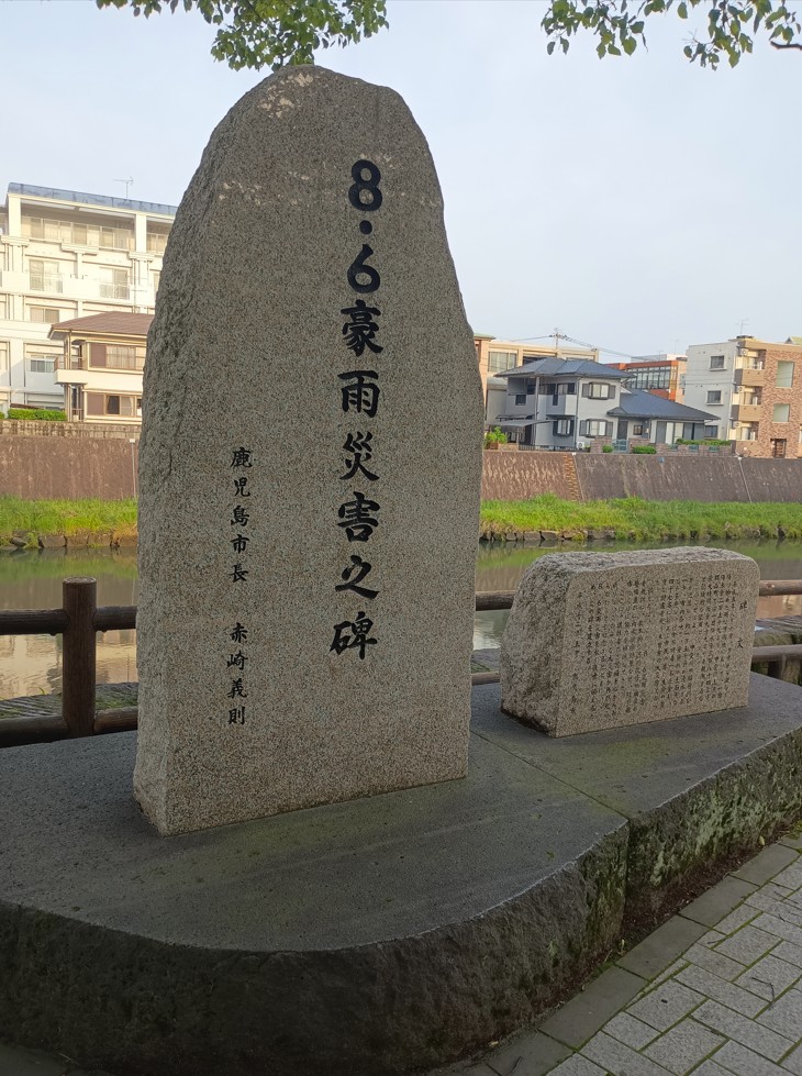 本日は鹿児島県ですよ~。鹿児島市内にある8・6豪雨災害之碑です。西田橋の東側にあり、天文館や鹿児島中央駅からも徒歩圏内です。鹿児島市内は京都や北海道ほどは綺麗ではないかもしれませんが碁盤の目状に道が伸びていますので、街歩きが比較的簡単にできるのではないでしょうか。